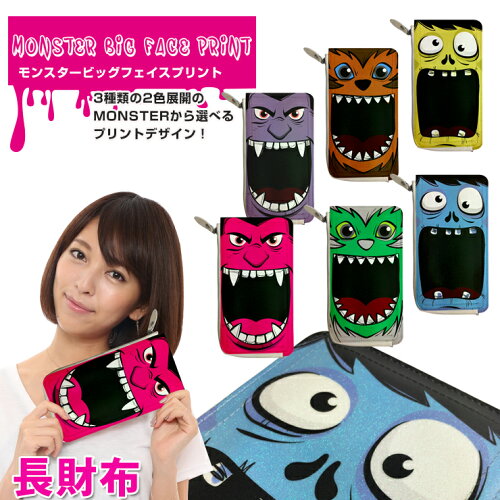 【ネコポス限定!送料無料】 モンスタービッグフェイスプリント 薄型長財布 (全6種)ウォレット/収納抜群 長財布 メンズ レディースL字ファスナー 薄い 軽い スマホも入る スマホケース プレゼント