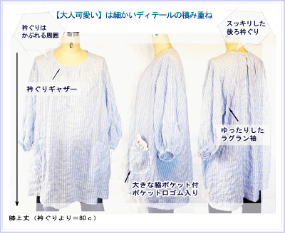 ・全体をしめすぎない風通しの良いデザインで、ゆったり着て頂けます。