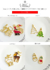 カラー:ゴールド材質:金属サイズ:サンタクロース約47*47*2.5mmベル約37*46*2.5mmクリスマスツリー約40*34*2.5mmトナカイ約45*32*2.5mm雪だるま約29*19*2.5mm靴下約34*19*2.5mm雪の結晶約28*25*2.5mmクッキー人形約28*24*2.5mmステッキ28*15.5*2.5mm(縦*横*厚)※カン含まず入 数1セット(9種類各1個)注意事項●海外生産の為、輸入、生産時に、擦り傷・バリ・歪み・メッキムラ等ある場合がございます。