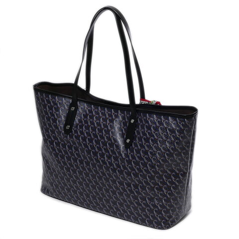 ・PVCコーティングキャンバスにエンボス加工 ・ハンドル、トリミングは牛革素材 ・内側:オープンポケット×2、ファスナーポケット ・底鋲付き カラー:ネイビー系 レザー部分:ブラック サイズ:W56-44cm(上部-底部)×H31cm×D17cm 素材:PVCコーティングキャンバス 牛革 仕様・付属品:新品タグ付き 保管袋付き 原産国:中国 ※国内正規品